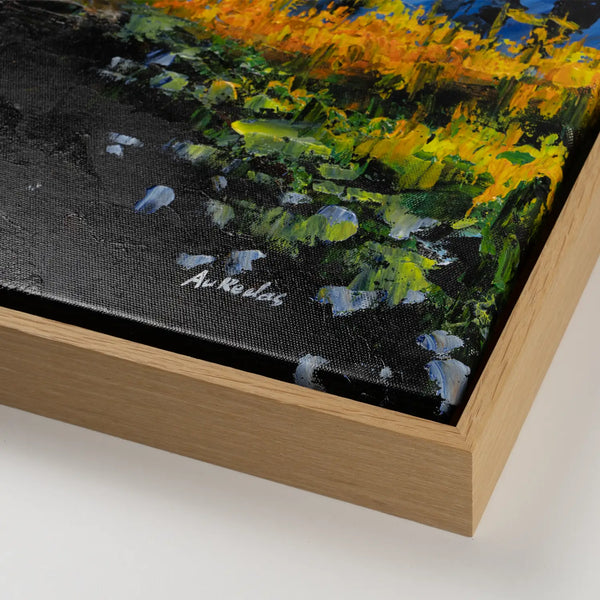 Dieses abstrakte Acrylfarben-Leinwandgemälde mit handgemalten Details entfaltet eine Vielzahl an Optionen: Verschiedene Größen und Rahmenvarianten laden dazu ein, jenes Zusammenspiel zu entdecken, das sich perfekt in die Symphonie Ihrer Raumgestaltung einfügt.