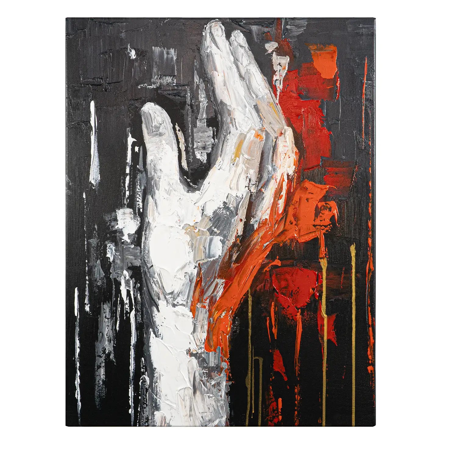 Dieses Gemälde zeigt eine ausdrucksstarke Hand, die sich aus tiefem Schwarz erhebt – ein Aufbäumen gegen die Leere. Am Handrücken lodert eine Flamme, die inneren Antrieb und den unbezwingbaren Willen symbolisiert. Das Motiv erzählt vom Mut, weiterzuleuchten, selbst wenn die Dunkelheit alles verschlingt – still, stark und voller Bedeutung.