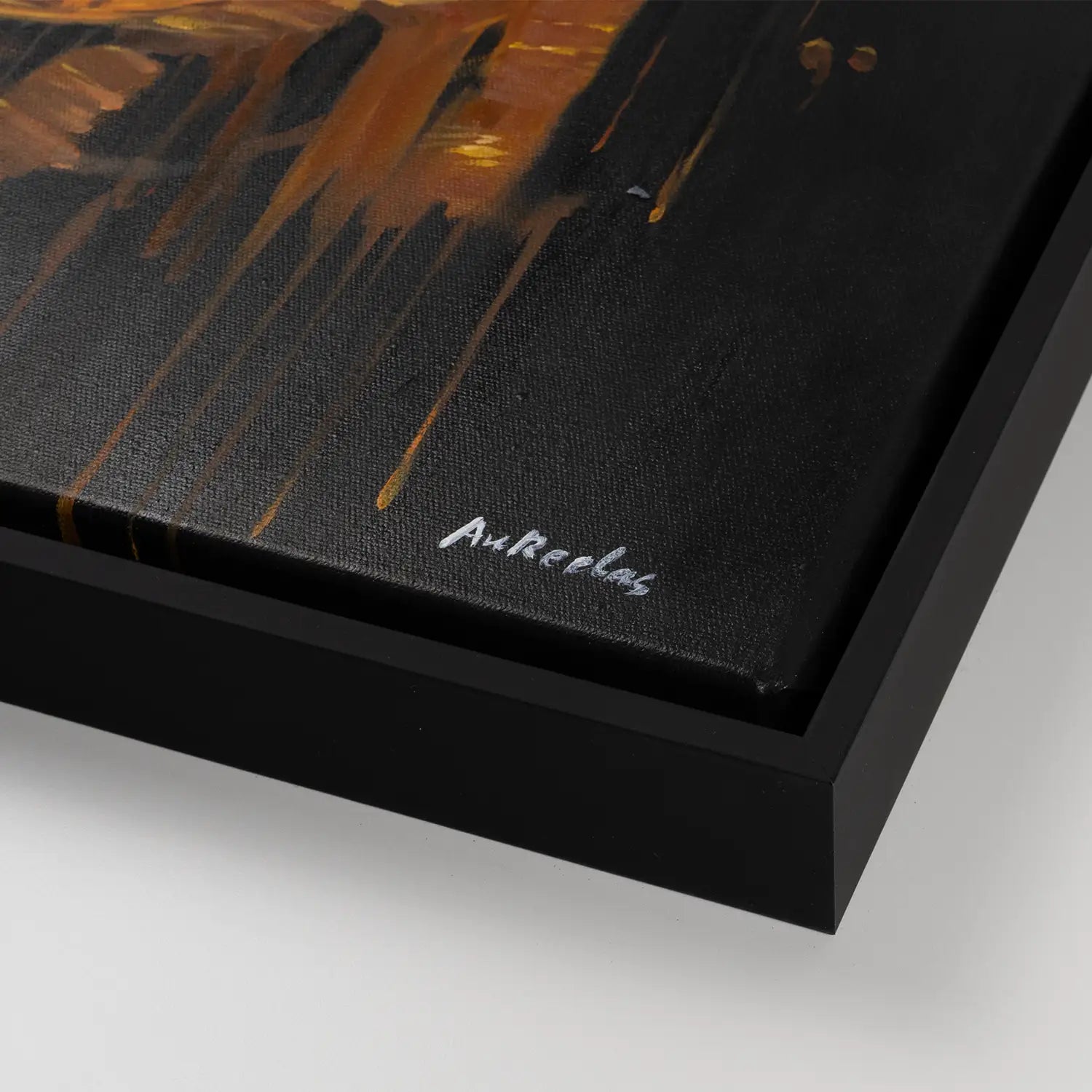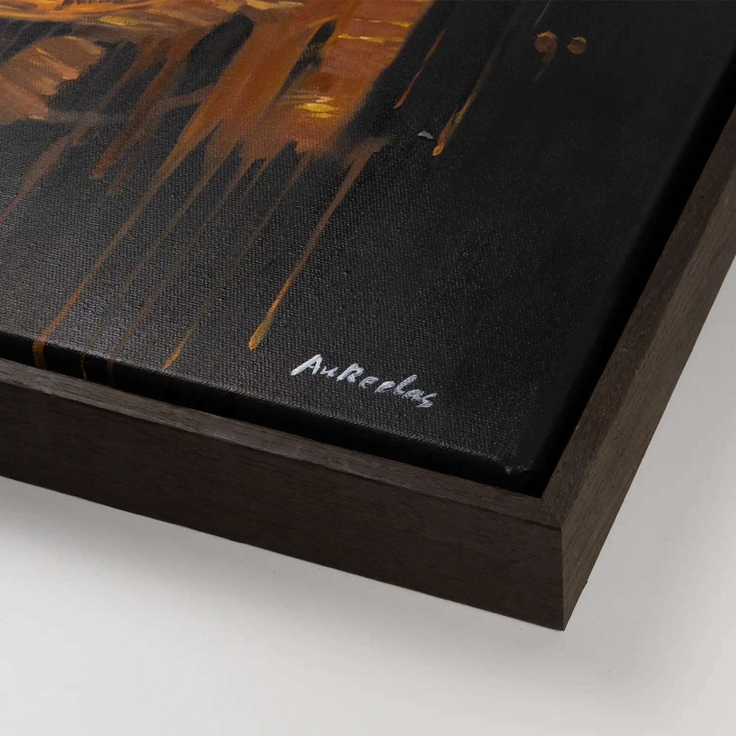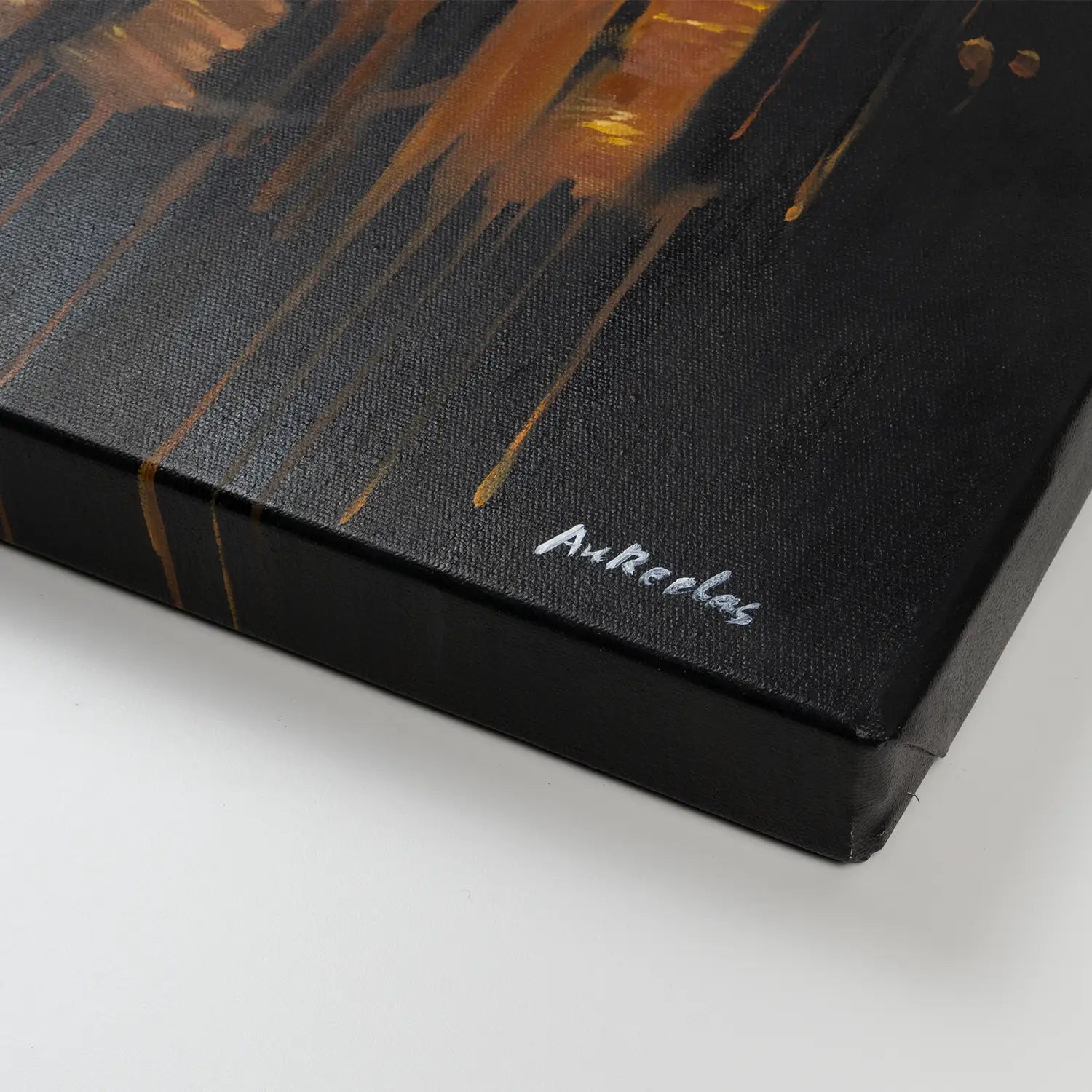 Gold auf Schwarz – ein zeitloser Kontrast, der Glanz und Tiefe vereint. Die Strukturpaste verleiht den Münzen reliefartige Präsenz, während Acrylfarben Lichtreflexe und Schatten plastisch hervorheben. Das Gemälde ist auf einem 4 cm Echtholz-Keilrahmen gefertigt und wirkt zugleich edel, modern und symbolisch eindringlich.