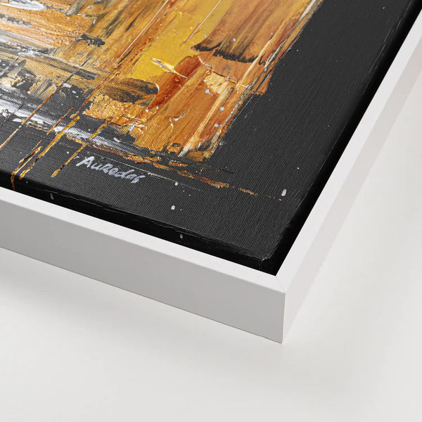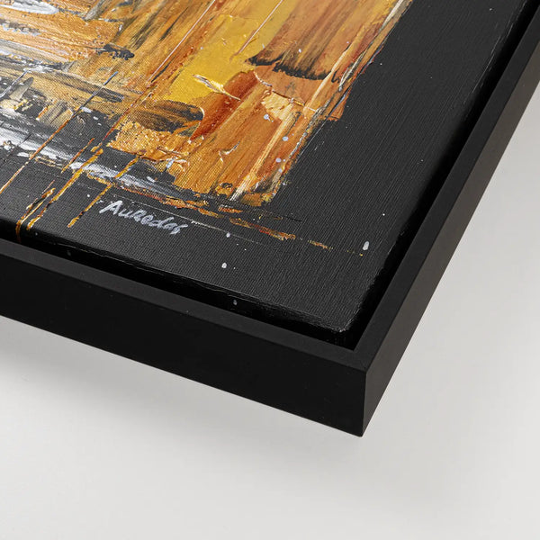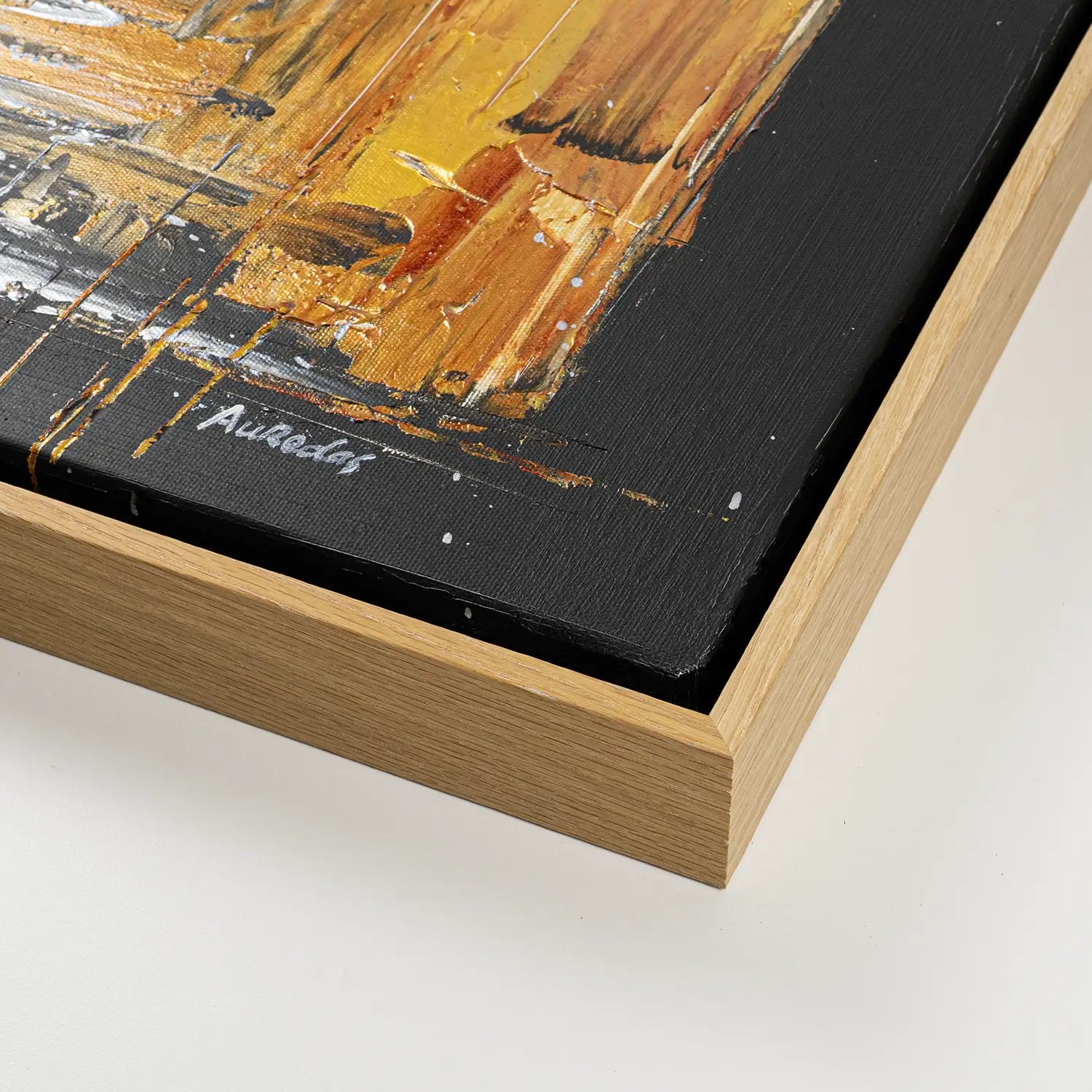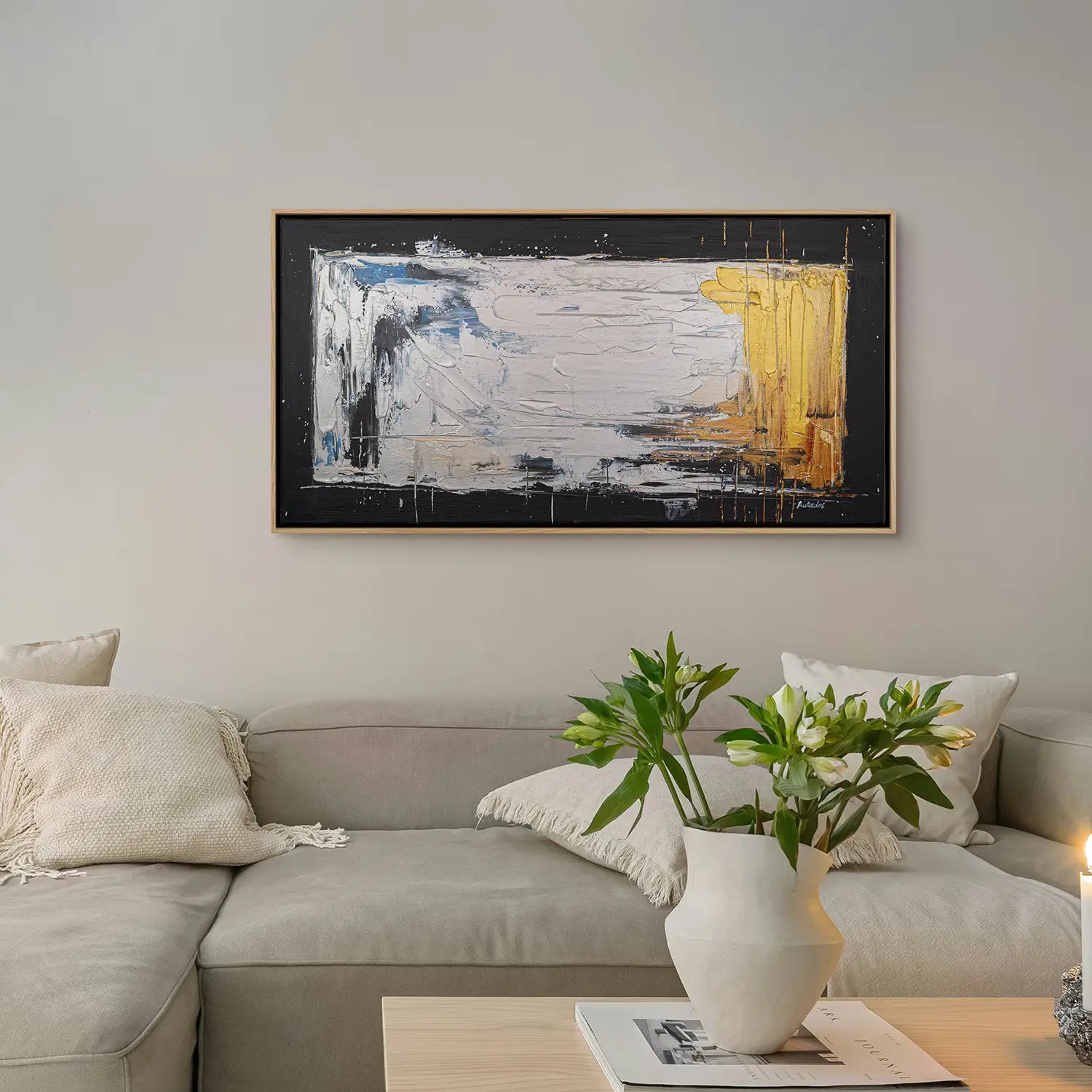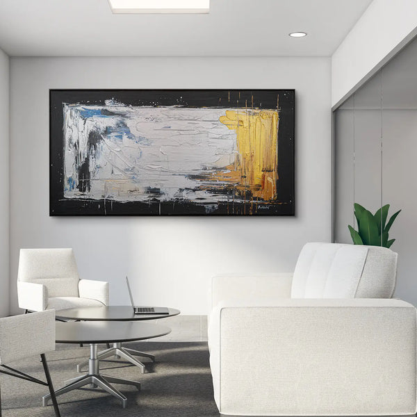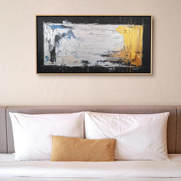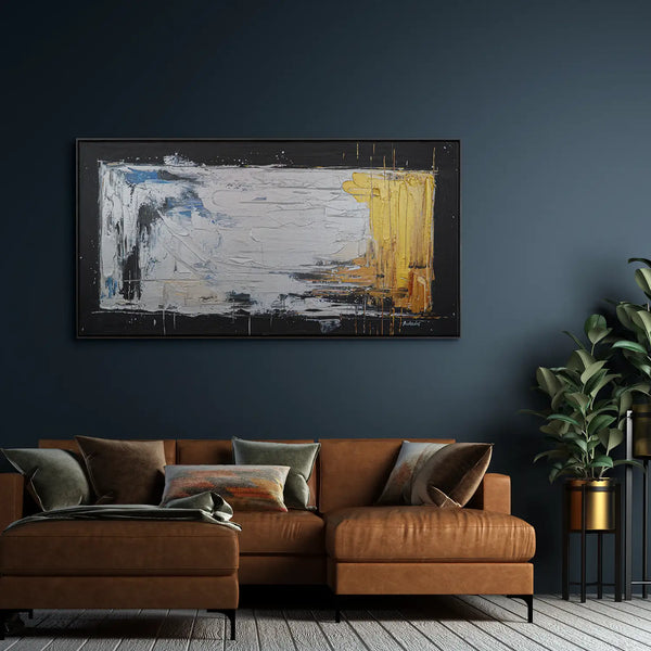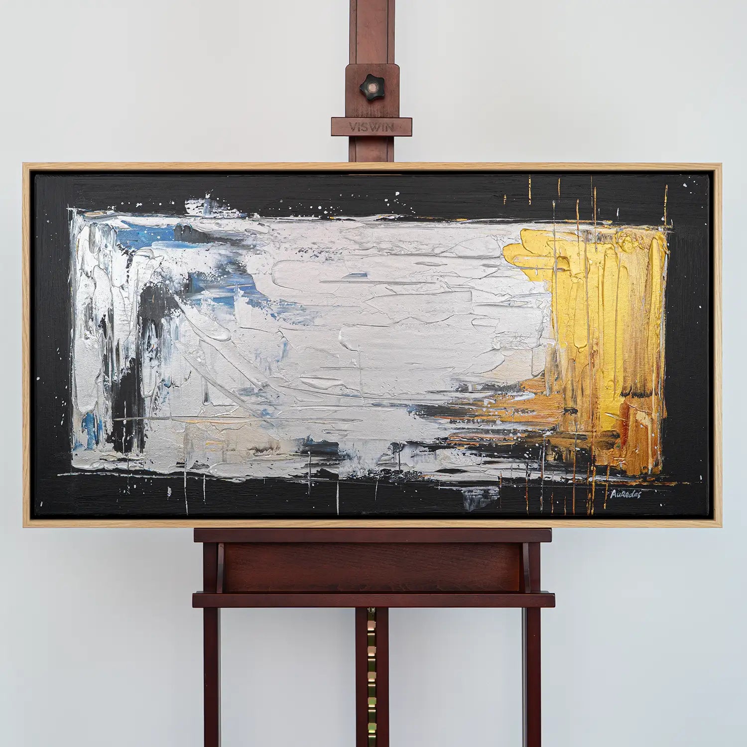 Dieses abstrakte Acrylfarben-Leinwandgemälde mit handgemalten Details entfaltet eine Vielzahl an Optionen: Verschiedene Größen und Rahmenvarianten laden dazu ein, jenes Zusammenspiel zu entdecken, das sich perfekt in die Symphonie Ihrer Raumgestaltung einfügt.